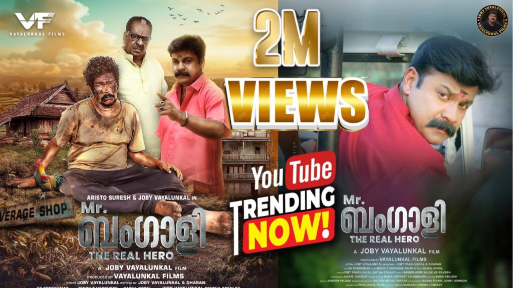 വയലുങ്കൽ ഫിലിംസിന്റെ ബാനറിൽ അരിസ്റ്റോ സുരേഷ് ,ജോബി വയലുങ്കൽ എന്നിവർ പ്രധാന കഥാപാത്രങ്ങളായ “Mr. ബംഗാളി – ദി റിയൽ ഹീറോ” എന്ന സിനിമ യൂട്യൂബിൽ രണ്ട് മില്യൺ കാഴ്ചക്കാരുമായി പ്രേക്ഷക ശ്രദ്ധ നേടുന്നു. വയലുങ്കൽ ഫിലിംസിന്റെ ബാനറിൽ ജോബി വയലുങ്കൽ രചനയും സംവിധാനവും ചെയ്ത മിസ്റ്റർ ബംഗാളി തിയേറ്റർ റിലീസിന് ശേഷം ഇപ്പോൾ യൂട്യൂബിൽ ട്രെഡിങ് ആണ്. അന്ന് സിനിമ തിയേറ്ററിൽ അധികം ശ്രദ്ധ നേടിയില്ല, പക്ഷേ ഇപ്പോൾ ഞെട്ടിക്കുന്ന വിജയമാണ് ചിത്രത്തിന് കിട്ടുന്നതെന്ന് നിർമ്മാതാവ് പറയുന്നു. വെറും 8 ദിവസം കൊണ്ടാണ് 20 ലക്ഷo കാഴ്ചക്കാരെ നേടിയെടുക്കാൻ ചിത്രത്തിന് സാധിച്ചത്. സിനിമയുടെ പേര് സൂചിപ്പിക്കുന്നതുപോലെ ചിത്രത്തിൽ ബംഗാളിയായിട്ടാണ് അരിസ്റ്റോ അഭിനയിക്കുന്നത്.